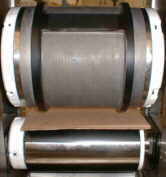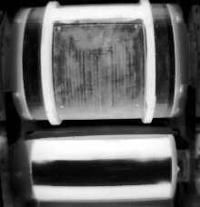 Es handelt sich hier um eine Prägevorrichtung für Zellstoffe. Die Walzen sind homogen temperiert. Teile der Oberfläche sind schwarz lackiert, damit die IR-Messung überhaupt möglich wird. Diese Zonen sind deutlich wärmer, erkennbar an den roten bzw. weissen Flächen.